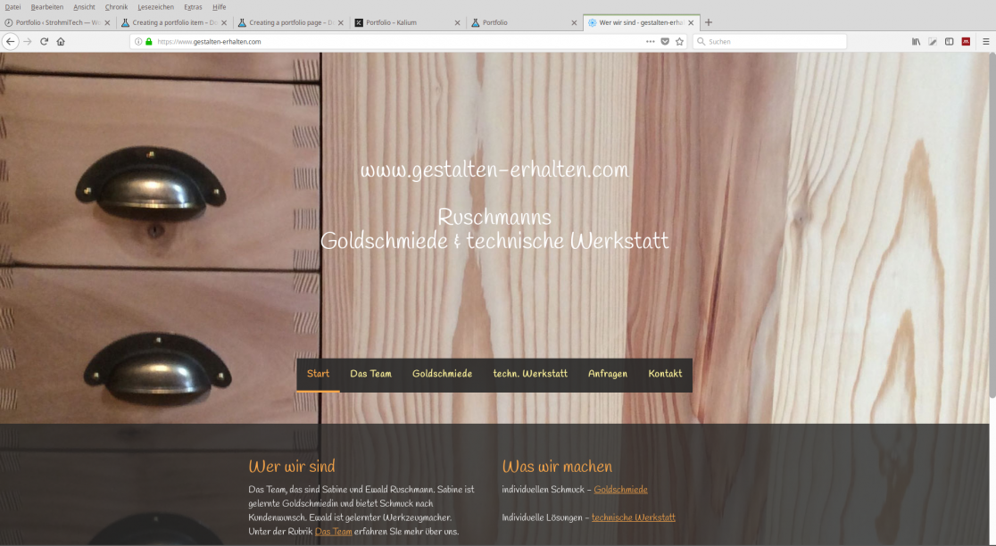 Dies ist die Seite für die Goldschmiede und technische Werkstatt von Familie Ruschmann. Sabine stellt zauberhaften Schmuck aus naturnahen Materialien her, Ewald schreinert und druckt (3D Druck) so ziemlich alles.